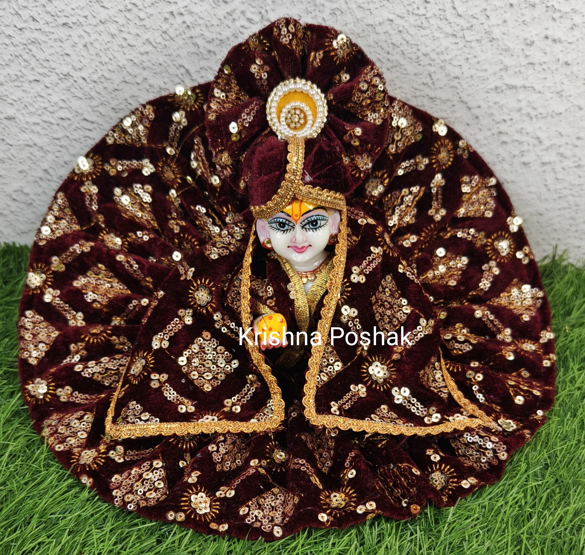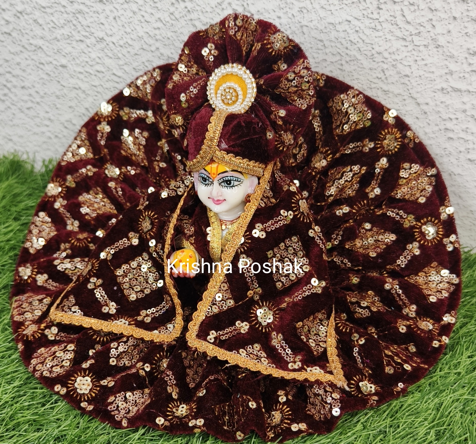 Winter Velvet Poshak With Mukut And Shawl For Laddu Gopalji-221