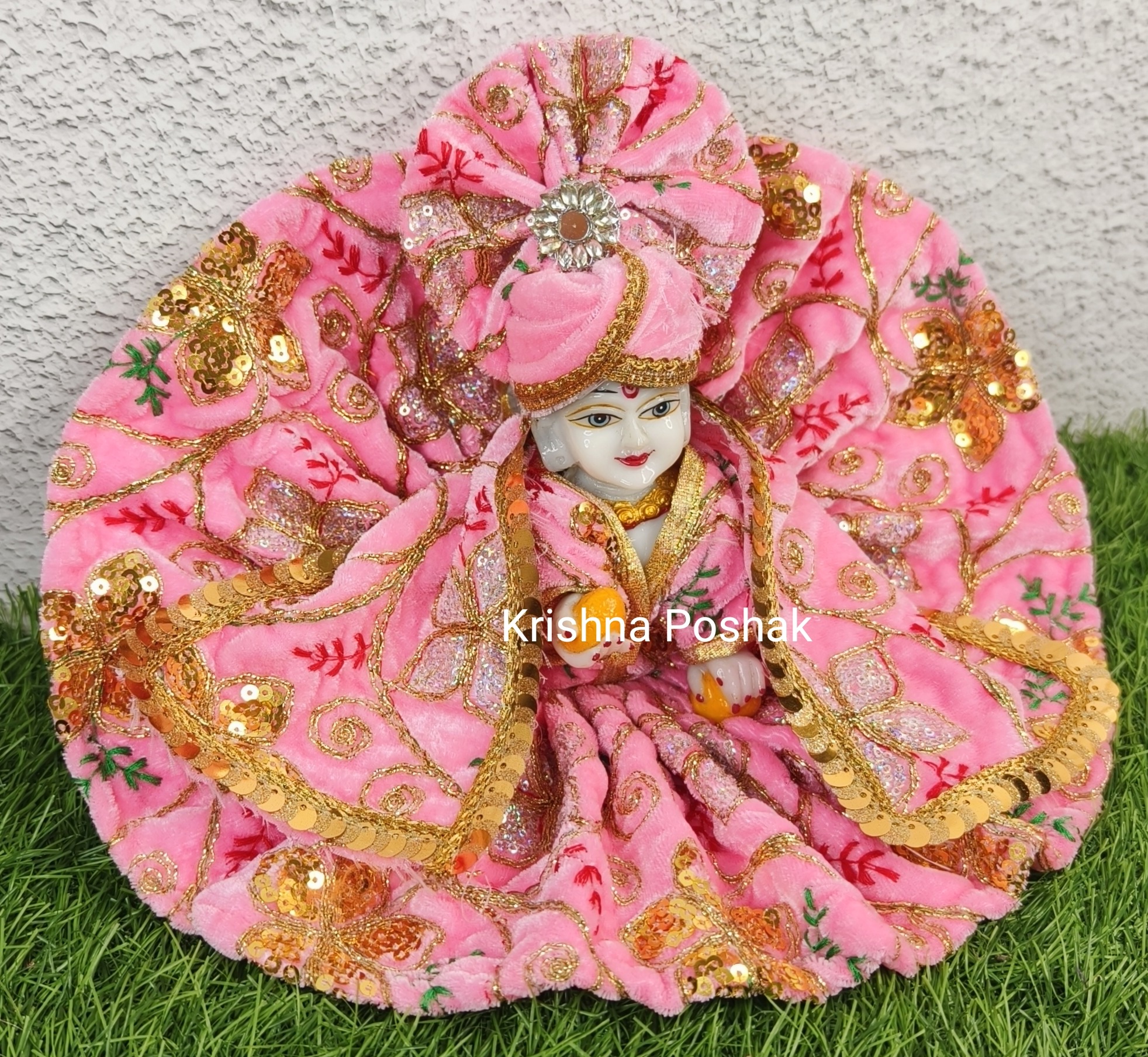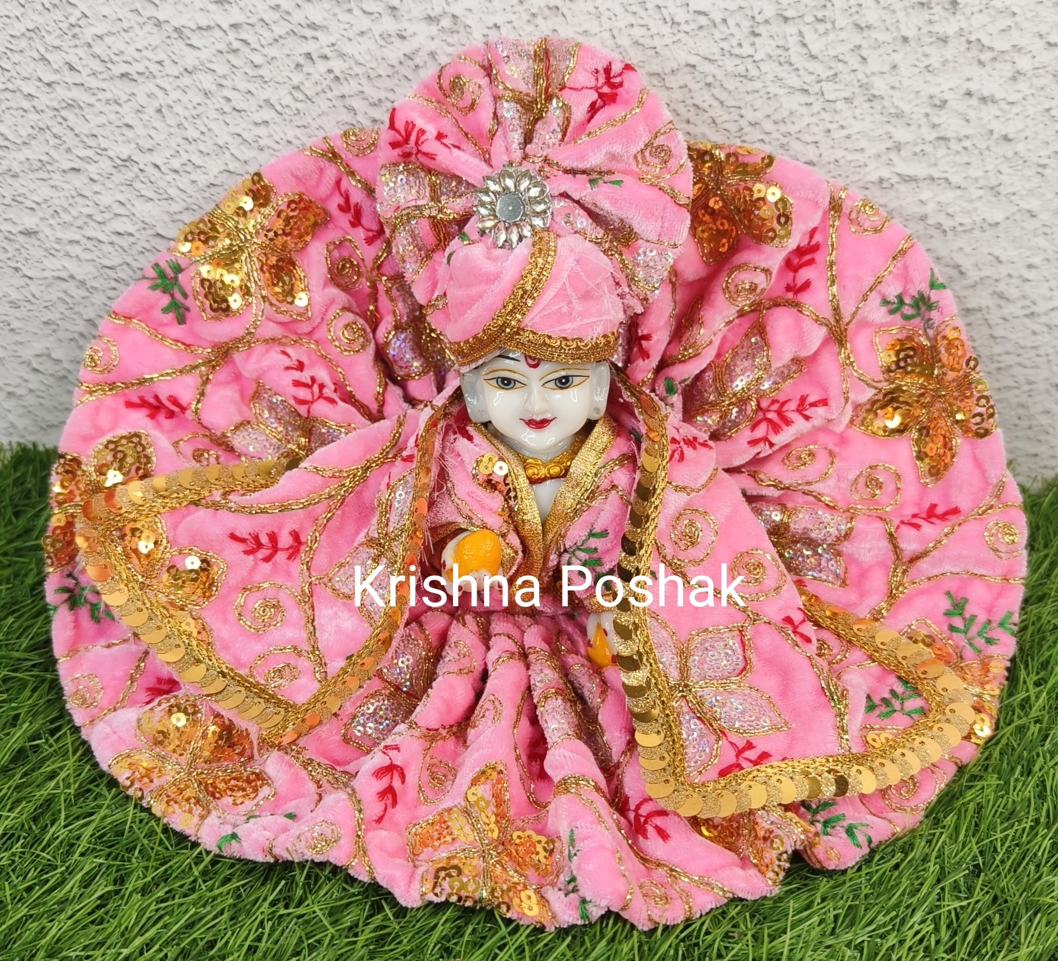 Winter Velvet Poshak With Mukut And Shawl For Laddu Gopalji-222