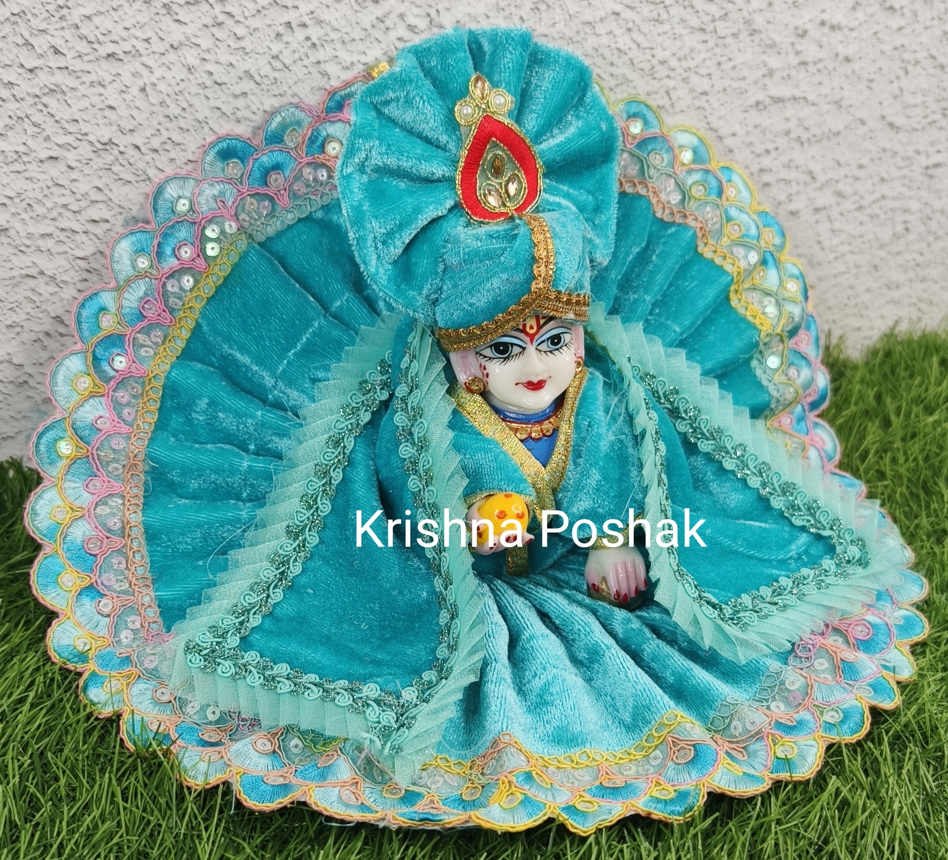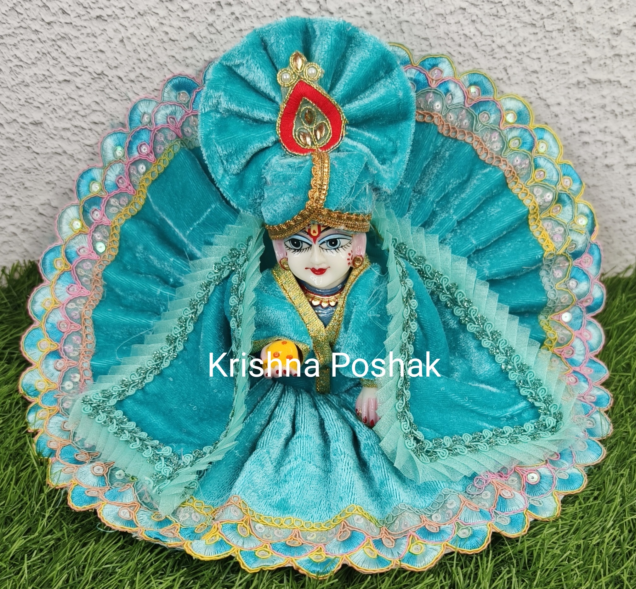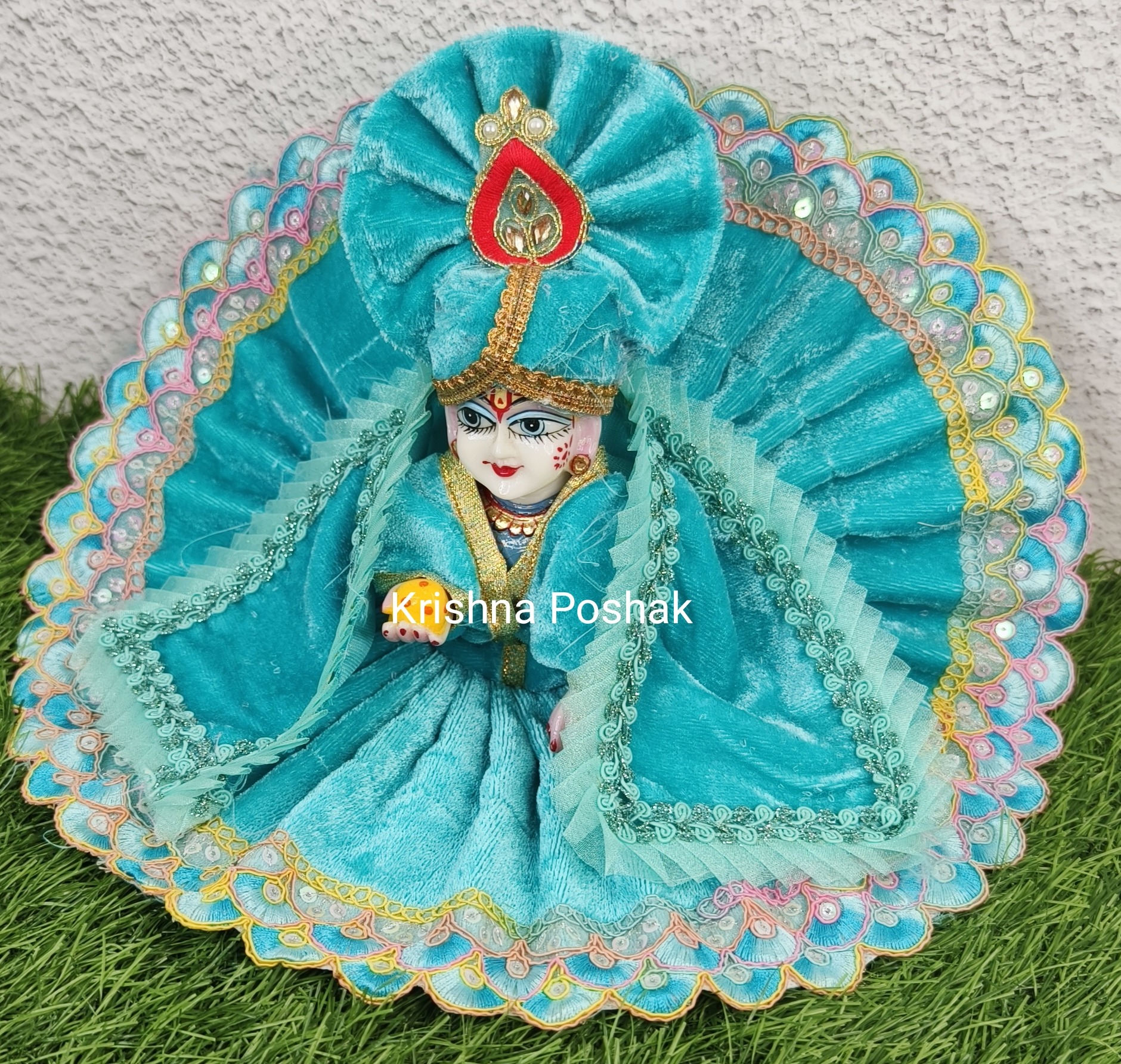 Winter Velvet Poshak With Mukut And Shawl For Laddu Gopalji-224